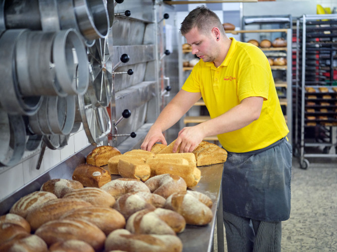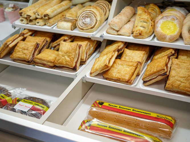 120 m², werden nebst Bäckerei und Konditoreiartikel auch Lebensmittel angeboten.